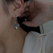 耳元でそっと揺れるよう、フックピアスを採用。